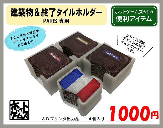 建築物タイルは枚数も多く、ゲーム中は3つの山にして裏にして重ねておきます。タイルの裏面には配置する地区が表示されているので、このホルダーを使用してタイル崩れを防止しましょう。ゲーム中もしまう時もこのタイルホルダーがあればスッキリします。